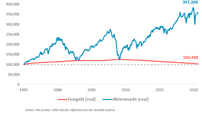 25-Jahres-Vergleich der Realwertentwicklung von Aktien